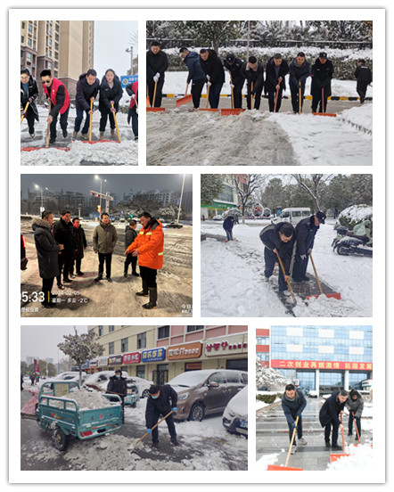 清雪現(xiàn)場,大家不畏嚴寒、齊心協(xié)力,及時對園區(qū)主干道、各物業(yè)項目內(nèi)部道路的積雪進行清理,保障了群眾的出入安全。此外,建發(fā)公司還充分利用微信群進行宣傳,及時提醒業(yè)主注意雪天道路安全。