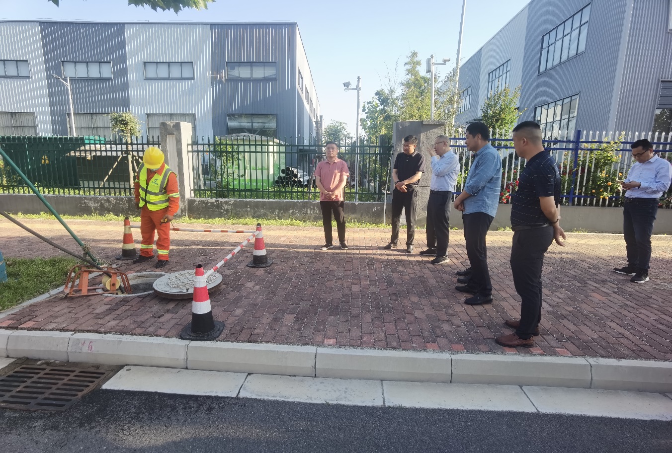 在鏡泊湖路疏通作業(yè)現(xiàn)場,檢查組認真聽取了園區(qū)汛前排水防澇工作進展情況匯報,并詳細詢問了園區(qū)汛前管道疏通、檢測及維修相關情況。
