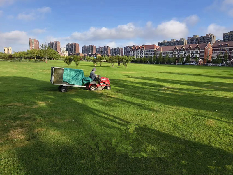 增加灌溉“保綠”,科學澆水潤綠地。采取定時、定責、定地塊的工作方法,用水泵抽灌的方式進行澆水。澆水時間控制在上午9點之前和下午4點以后,最大限度減少水分蒸發(fā),及時供給草坪所需水分。
